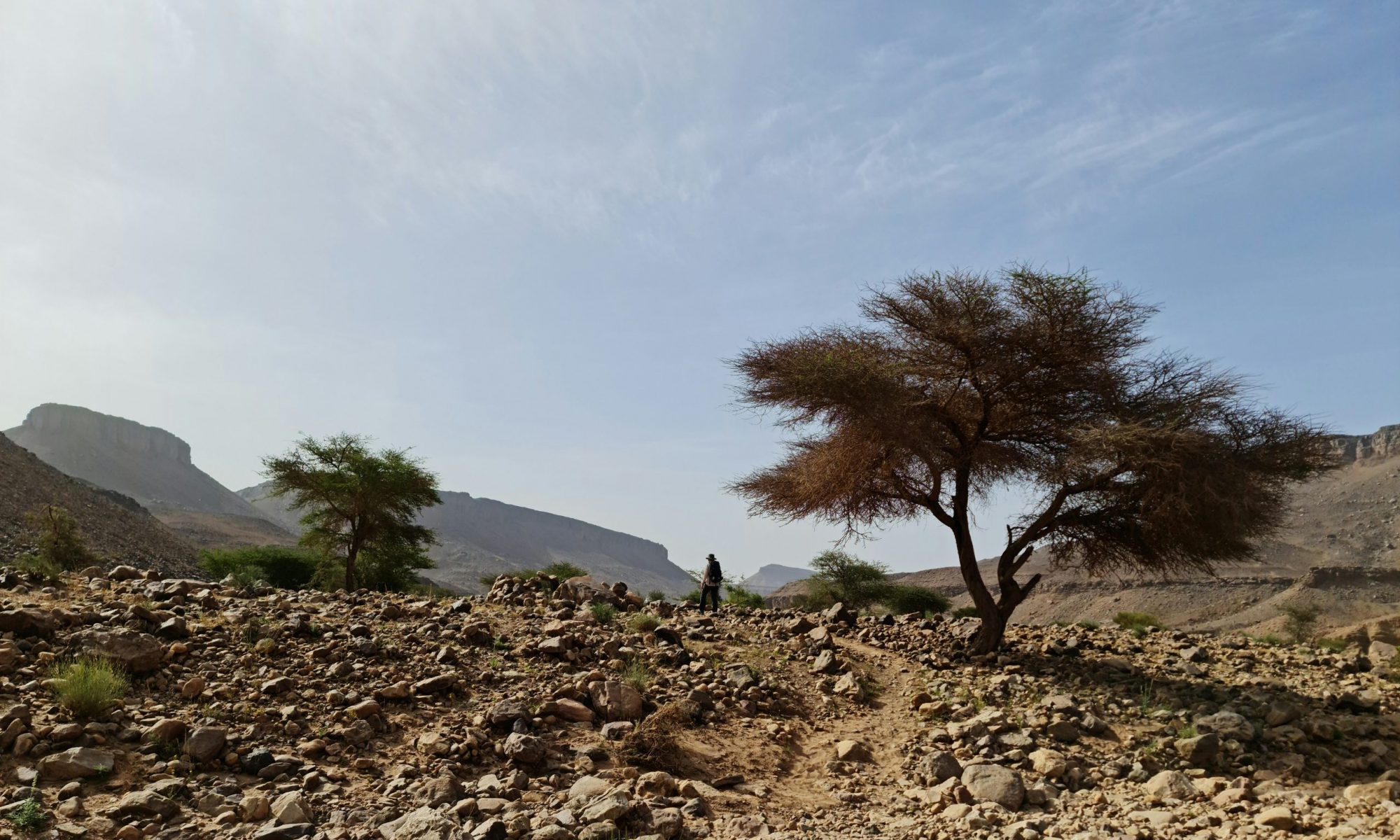 Our next few days are spent walking among some of the biggest dunes in the Moroccan Sahara. Crossing vast rock strewn plains. Following broad riverbeds, tens of metres deep in places, where once mighty rivers gushed forth. And across the impressive Jbel bani. With the odd tree here and there. Occasional ponds of water, and perhaps a sighting of oribi, wolf, and other animals adapted to the vast desert.